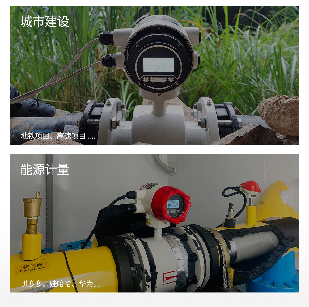 電磁流量計(jì)工作原理基于法拉第電磁感應(yīng)定律。圖 2 中上下兩端的兩個(gè)電磁線圈產(chǎn)生恒定或交變磁場,當(dāng)導(dǎo)電介質(zhì)流過電磁流量計(jì)時(shí),流量計(jì)管壁上的左右兩個(gè)電極間可檢測到感應(yīng)電動勢,這個(gè)感應(yīng)電動勢大小與導(dǎo)電介質(zhì)流速、磁場的磁感應(yīng)強(qiáng)度、導(dǎo)體寬度(流量計(jì)測量管內(nèi)徑)成正比,再通過運(yùn)算就可以得到介質(zhì)流量。