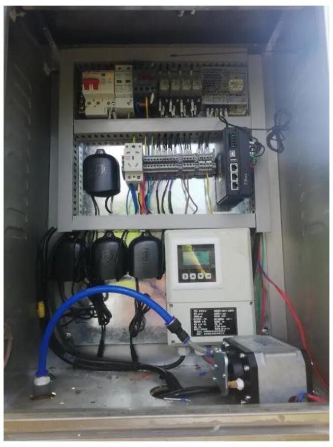 鄒工在現(xiàn)場(chǎng)調(diào)試,電磁流量計(jì)進(jìn)行計(jì)量,數(shù)據(jù)通過(guò)云平臺(tái)進(jìn)行監(jiān)控,現(xiàn)場(chǎng)總計(jì)裝有56臺(tái)分體式電磁流量計(jì)。