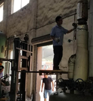 △勞動(dòng)人民的智慧還是無(wú)窮的,現(xiàn)場(chǎng)技術(shù)因?yàn)楦叨炔粔騽?dòng)用了叉車。