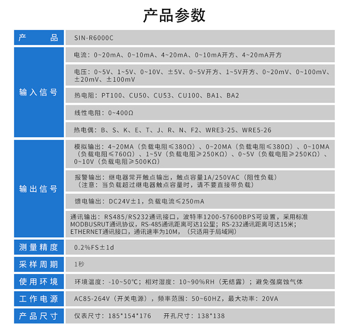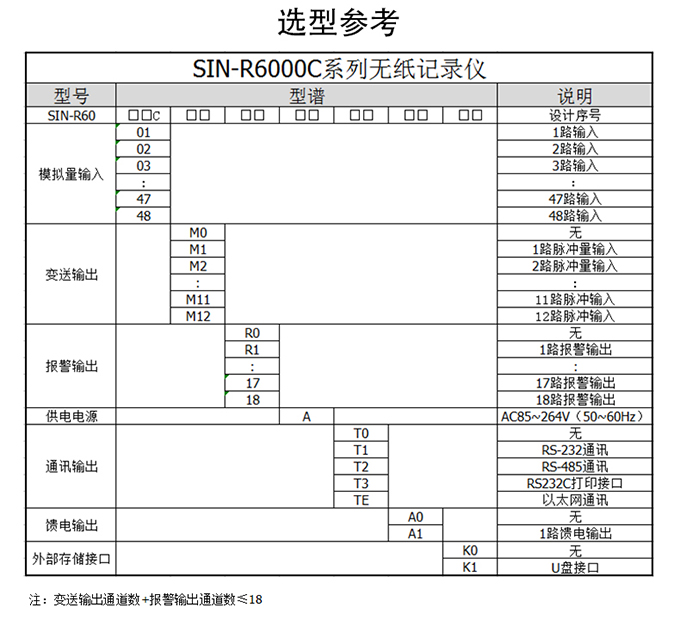 SIN-R6000C系列彩色無紙記錄儀48路(萬能輸入(可組態(tài)選擇輸入:標(biāo)準(zhǔn)電壓、標(biāo)準(zhǔn)電流、熱電偶、熱電阻、頻率、毫伏等)??蓭?8路報(bào)警輸出,12個(gè)變送輸出,RS232/485通訊接口,以太網(wǎng)接口,微型打印機(jī)接口和USB接口,SD卡插座;可提供傳感器配電;具有強(qiáng)大的顯示功能,實(shí)時(shí)曲線顯示,歷史曲線追憶,棒圖顯示,報(bào)警列表顯示。人性化的外觀設(shè)計(jì)、良好的功能體現(xiàn)、可靠的硬件品質(zhì)、精湛的制造工藝,使SIN-R6000C具有更高的性能價(jià)格比。