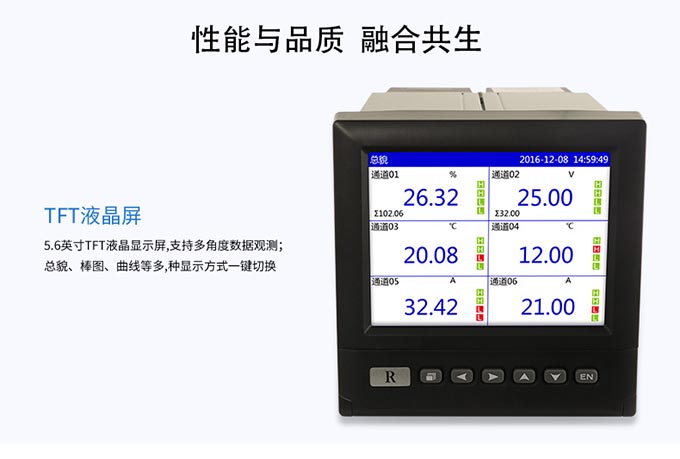 SIN-R4000D系列溫度無紙記錄儀可自由組態(tài)輸入標準電流、標準電壓、熱電偶、熱電阻、頻率等信號,可實現(xiàn)為傳感器配電和繼電器報警輸出,并且可通過U盤或通訊方式與上位機進行數(shù)據(jù)交換。無紙記錄儀本身具有實時數(shù)據(jù)顯示畫面、曲線顯示畫面以及棒圖數(shù)據(jù)顯示畫面,同時,可以與微型打印機相連接,實現(xiàn)現(xiàn)場打印功能,與聲光報警器連接,實現(xiàn)現(xiàn)場聲光報警功能。