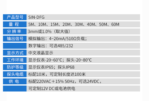 應(yīng)用行業(yè) SIN-DFG分體式超聲波液位計(jì)廣泛用于罐體、水池、水庫(kù)的液位和體積測(cè)量,也可用于明渠的流量測(cè)量。