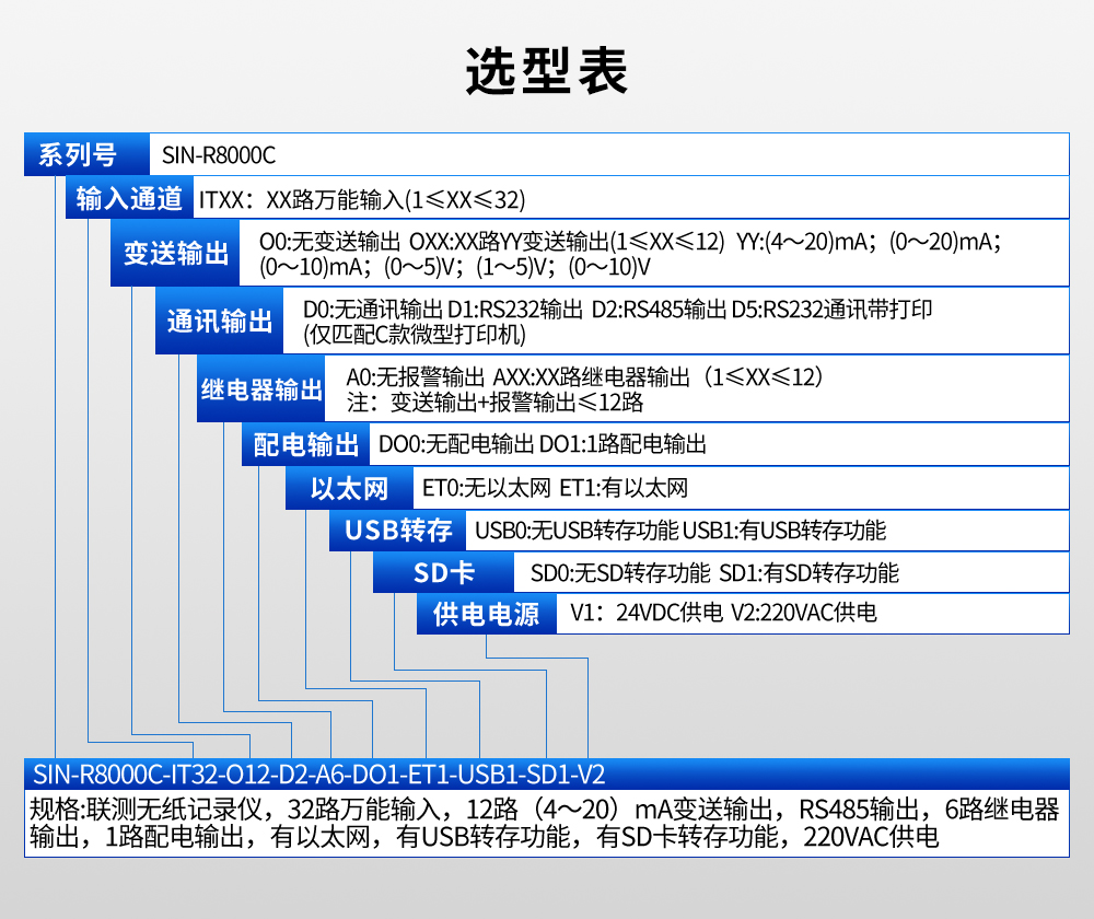 8路萬能信號輸入(可組態(tài)選擇輸入:標準電壓、標準電流、熱電偶、熱電阻、毫伏等)??蓭?路報警輸出,1個饋電輸出,RS485通訊接口,以太網(wǎng)接口,微型打印機接口和USB接口,SD卡插座;具有強大的顯示功能,實時曲線顯示,歷史曲線追憶,棒圖顯示,報警狀態(tài)顯示。