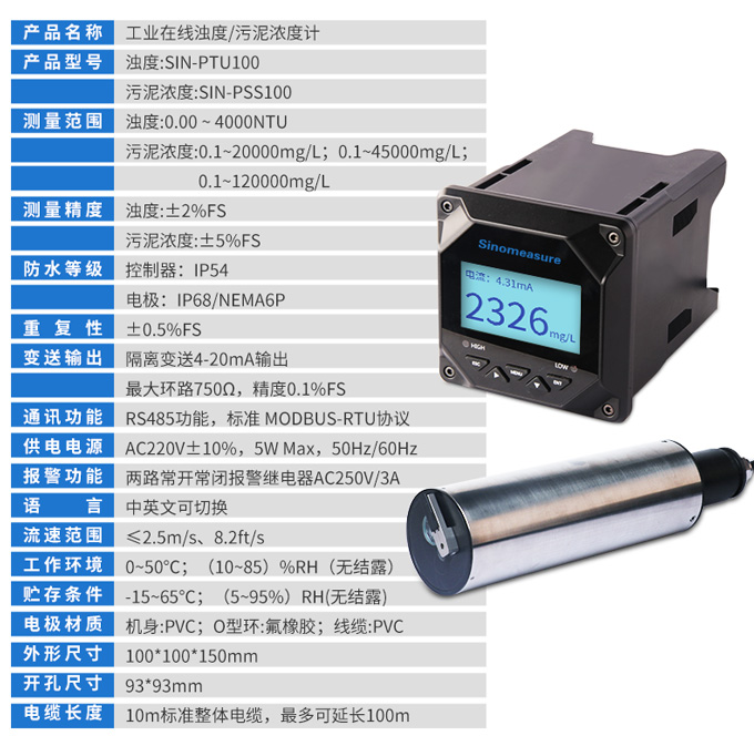 SIN-PTU100在線濁度檢測(cè)儀是一款智能在線化學(xué)分析儀器之一,基于組合紅外吸收散射光線法的原理,應(yīng)用ISO7027方法可以連續(xù)并精確地測(cè)定濁度或污泥濃度。